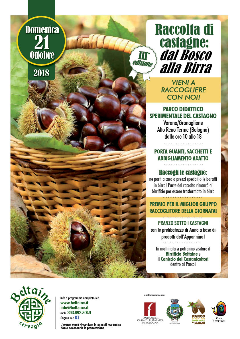 Birrificio Beltaine in collaborazione con coop. Campeggio Monghidoro, Fondazione Cassa di Risparmio in Bologna, Consorzio Castanicoltori Granaglione, Parco Didattico Sperimentale del Castagno con il patrocinio del Comune dell’Alto Reno Terme